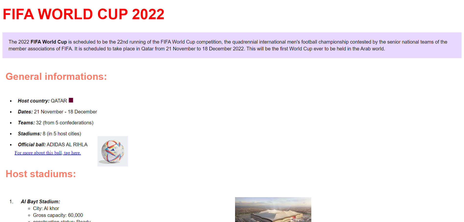 I created a page containing FIFA 2022 WORLD CUP infos using HTML & CSS